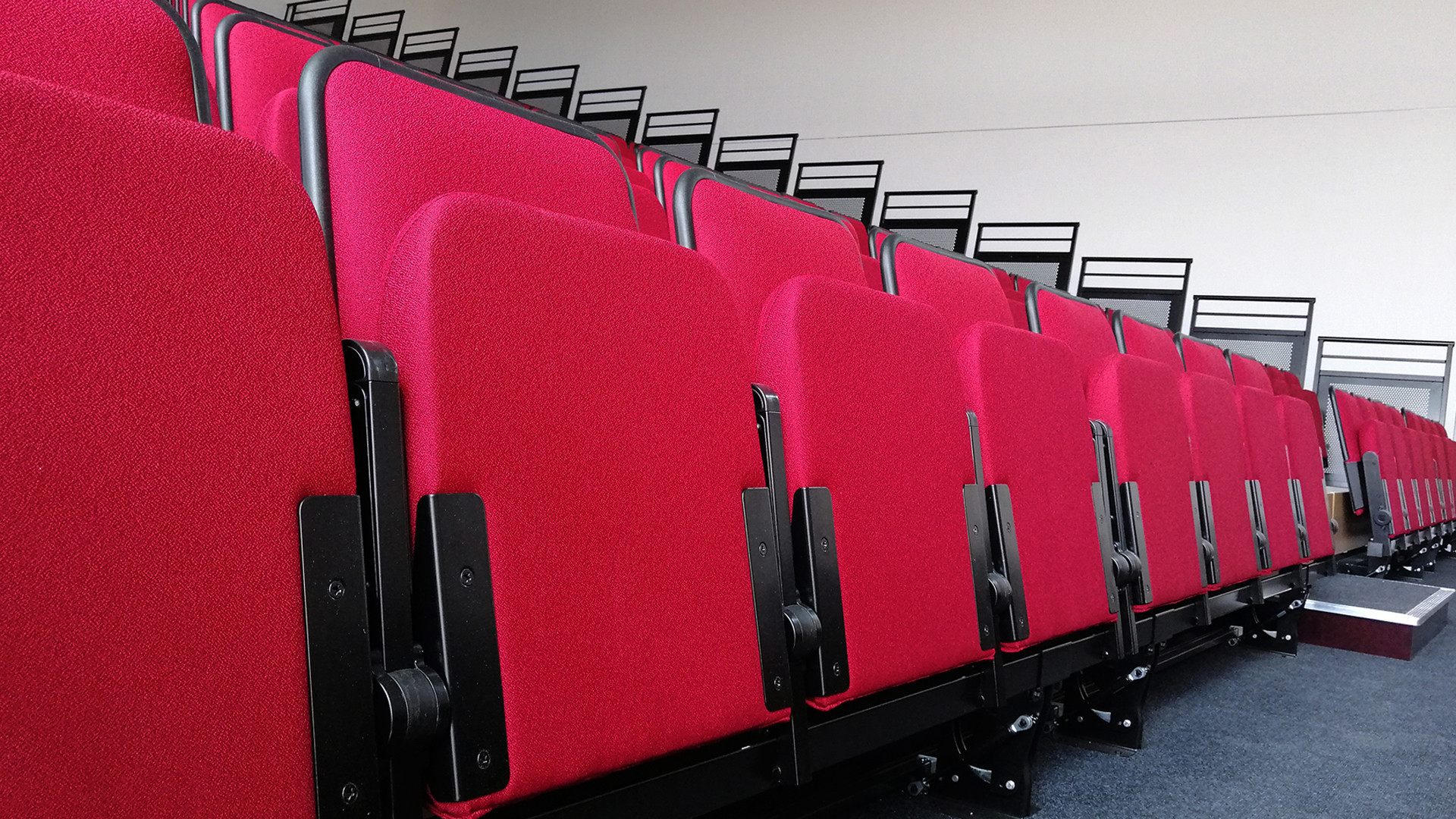 Our Accolade chairs look stunning in red, and the plastic wraparound covers to the rear prolong the life of the upholstery. Accolade is a really popular choice with schools; tested and certified to the highest level of the British strength standard for ranked seating, it’s hardy as well as smart.