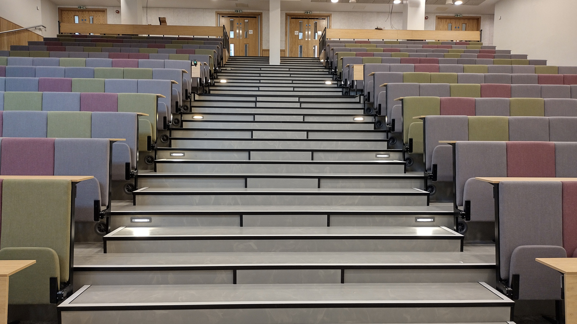 Queen’s Management School at Queen’s University Belfast is a world-renowned centre for research, undergraduate and postgraduate education. Working with Todd Architects and Felix O’Hare, Audience Systems designed, manufactured and installed seating for two rooms in the Management School’s brand new building: a traditional lecture theatre and a “Harvard style” lecture theatre.