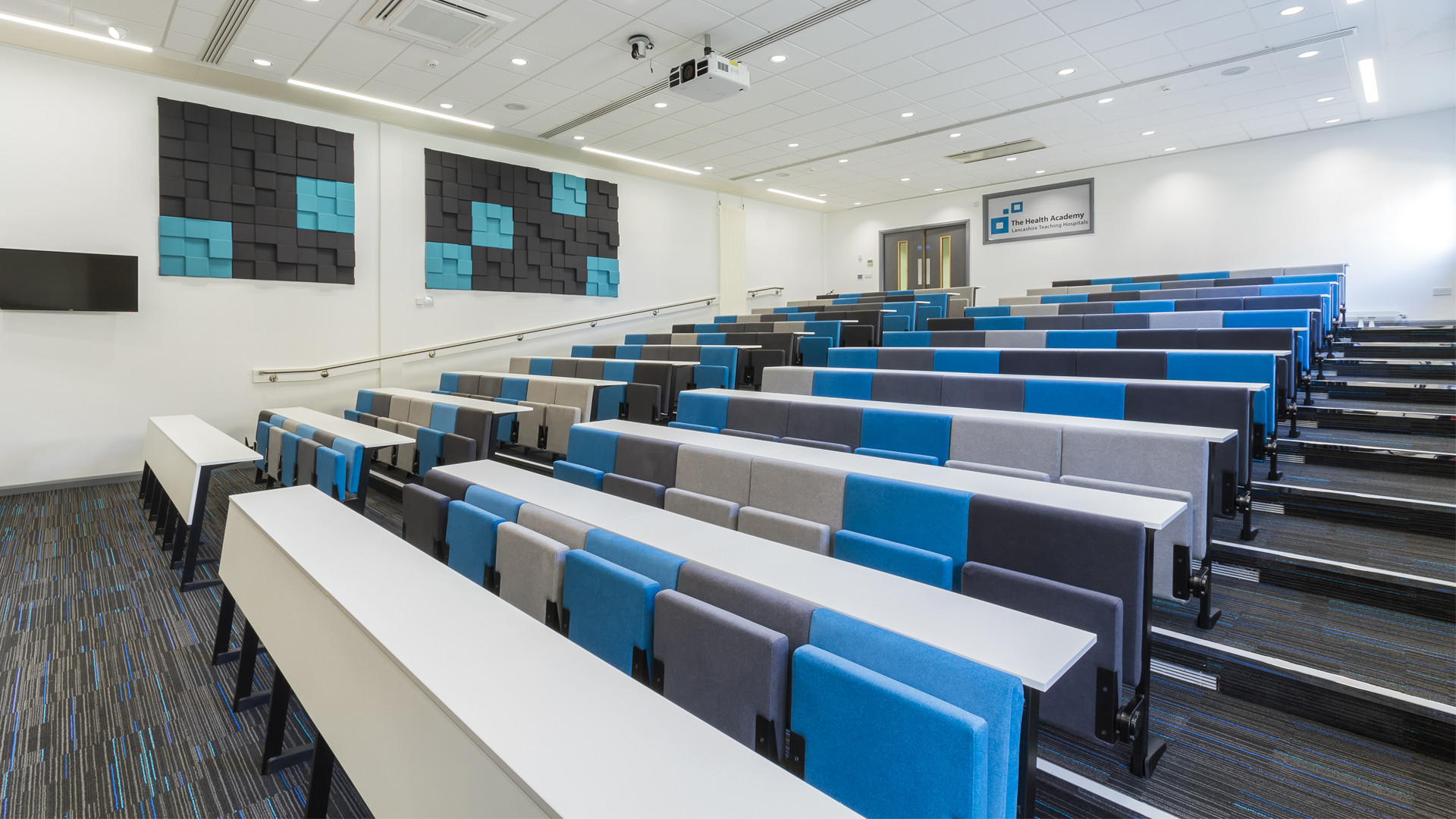 The lecture theatre seating was installed as part of a major remodelling of the Education Centre at the Royal Preston Hospital – a teaching hospital in Lancashire, UK. It was designed in conjunction with Frank Whittle Architects.