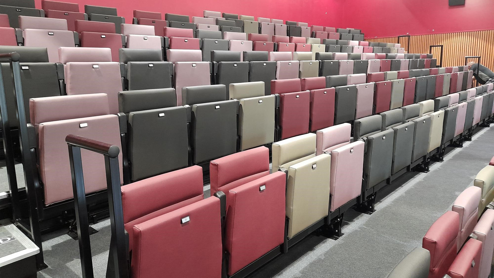 Optimises the sitting angle for patrons in the upper tiers of a theatre or arena.