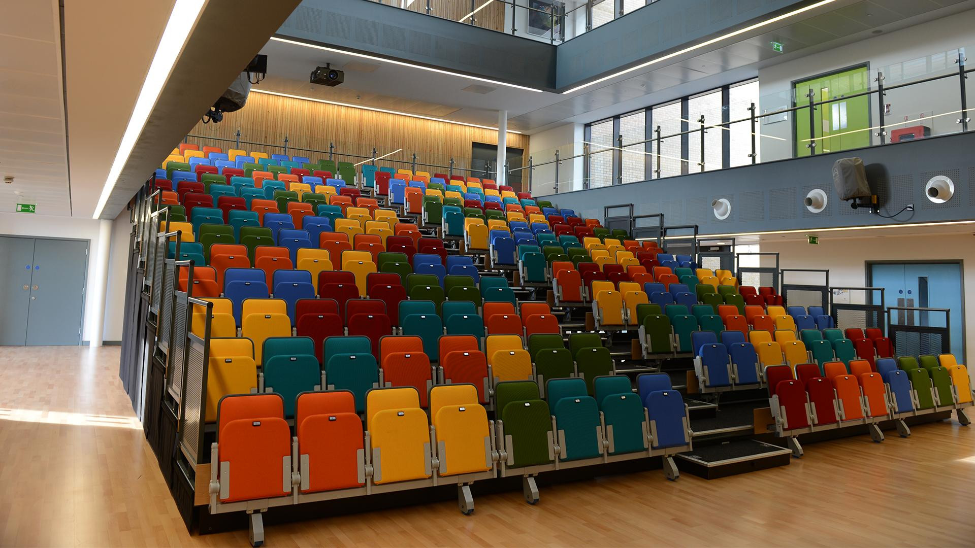 Audience Systems enjoys an enviable reputation worldwide for the quality and reliability of its retractable seating systems. From a lofty arena to a school auditorium or cosy studio theatre, we are proud to have engineered flexible seating platforms to suit a vast range of requirements and budgets.